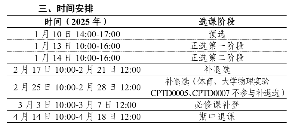 1. 选课时间安排如下图所示,请注意各时间节点。