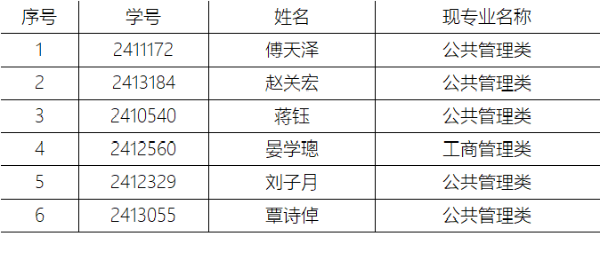 一、 拟录取学生名单如下(按学号排序):