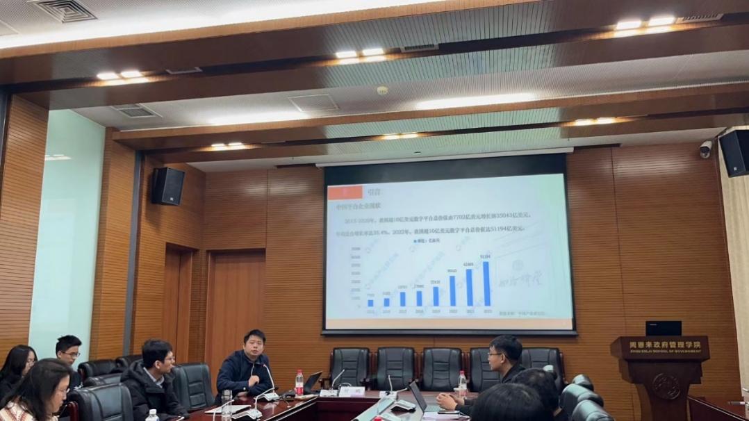 副院长吴晓林老师并对此次讲座做了总结,指出刘鹏老师的讲座是高水平的学术研究,并鼓励青年研究者们向刘鹏老师学习,做有价值的真研究。凌争老师从“发现问题”“寻找素材”“知识迁移”“文献综述”“做大研究”和“创造概念”六个角度分享了学习刘鹏老师研究的心得。王力老师就政府与平台公司关系中“发包”概念的适用范围与刘鹏老师进行了讨论。刘鹏老师随后与多名同学和老师问答互动,并就互联网平台公司在当代中国国家治理中的功能和作用进行了进一步探讨。