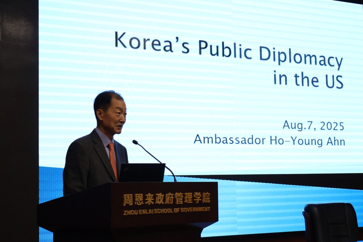 “南开大使讲堂”第3期于政府管理学院128报告厅举行。韩国前驻美大使安豪荣以“韩国在美国的公共外交”为主题,为全校师生带来一场精彩的讲座。政府学院党委书记王慧研究员、美国A片