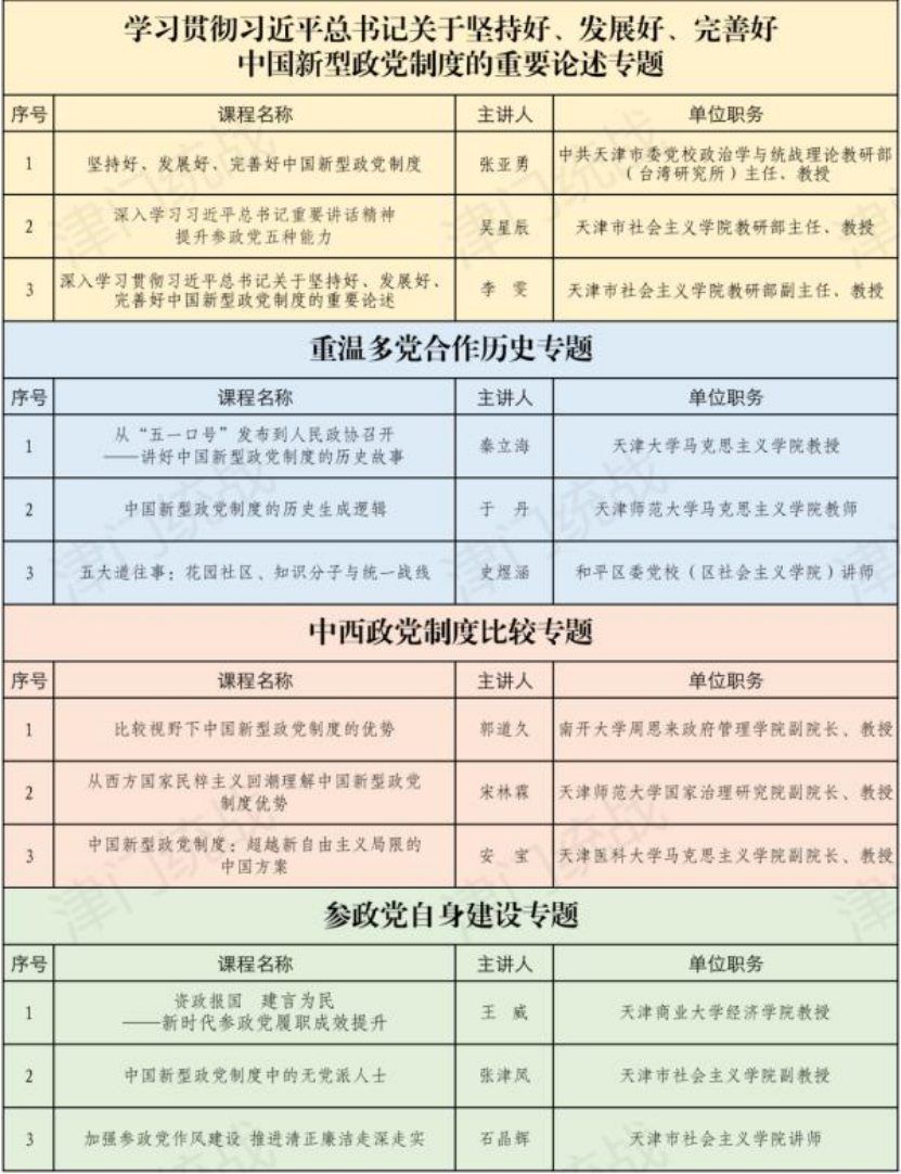 近日,中共天津市委统战部公布了2025年度天津市“中国新型政党制度”精品课目录,美国A片