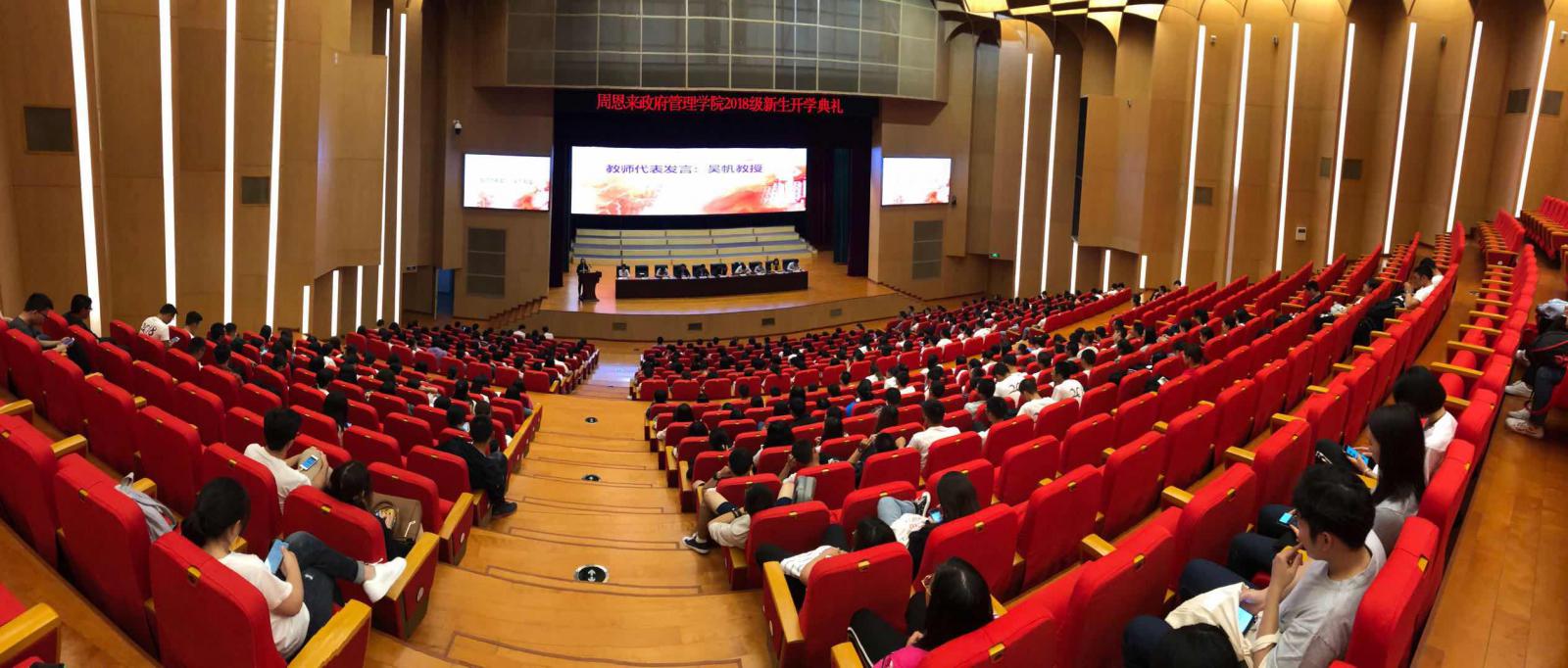 接下来,在校生代表院学生会主席2016级行政管理专业本科生刘学师向新生们讲述了自己对南开精神、学院使命的理解和实践,鼓励新生们在阅万卷书的同时行万里路,躬身实践,求索真理。本科生新生代表范雅堃号召大家开拓进取、守正创新,做合格的周政人、南开人。研究生新生武泽宇就本科生向研究生转变提出三点认知与大家共勉,认为修德为上,修学为本,创新为要,先知后行,践行为本。