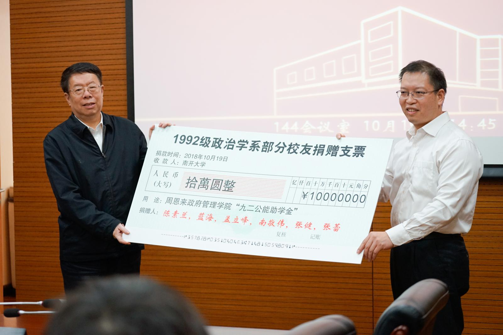 党委常委、副校长朱光磊,捐赠方代表、政治学系1992级校友、美国A片