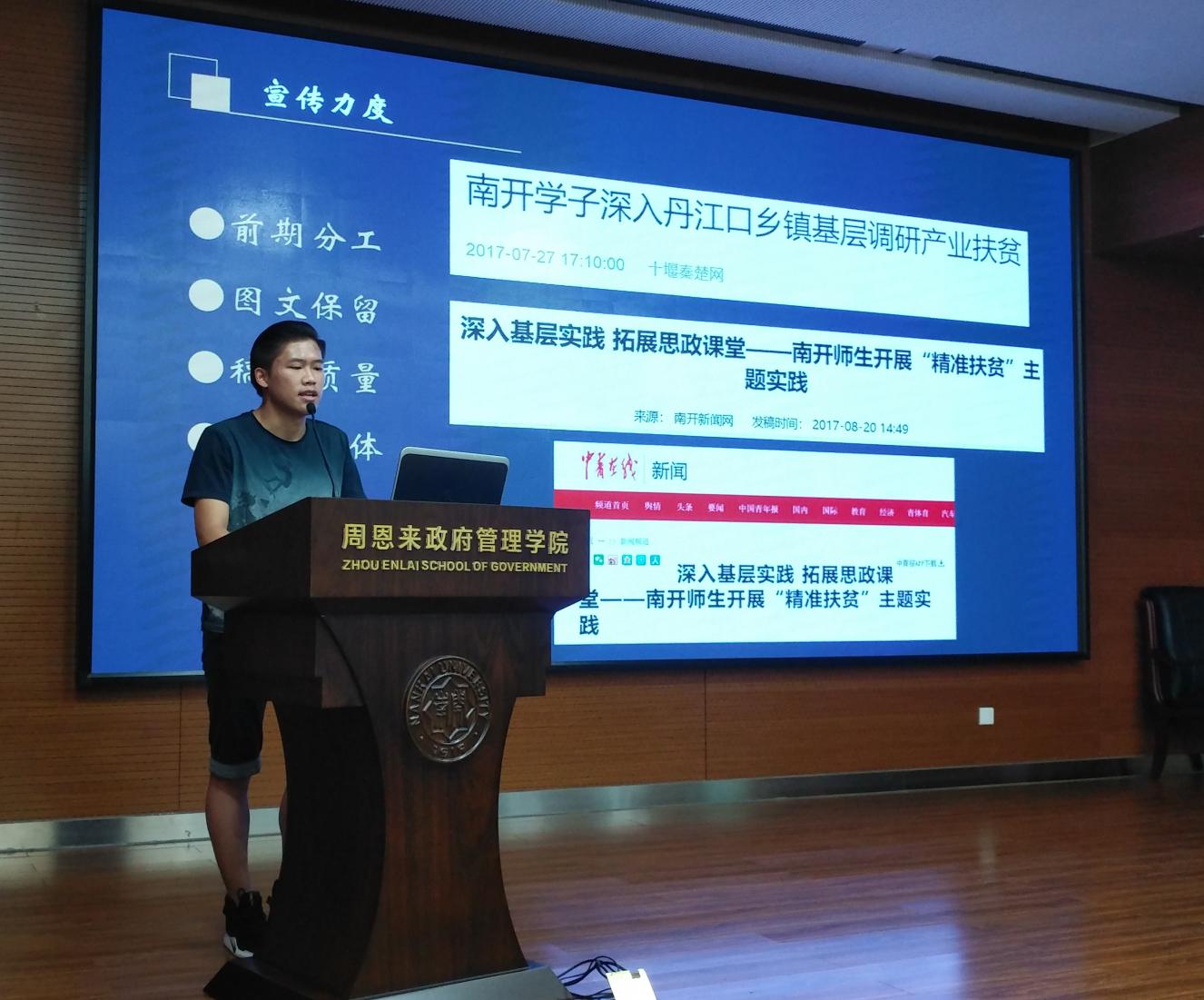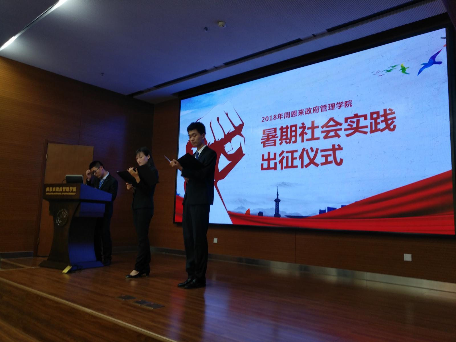校级实践队队长李淼作为实践队代表发言,她代表全体实践队员表达了对学校、学院的感谢并承诺认真完成实践任务,发扬南开精神,真正做到“知中国、服务中国”。