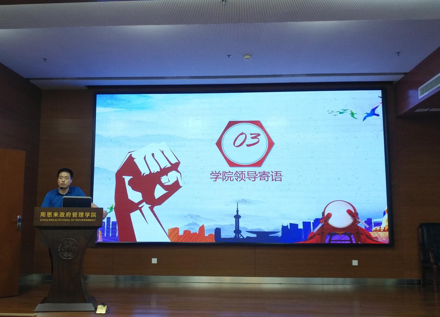 出征仪式上,高磊老师代表学院领导致辞。高磊老师强调,我们要把暑期社会实践作为代表学院形象与学校形象的重要活动,要在实践考察调研的过程中,真真切切地将实践地的宝贵资源与启发性意义内涵挖掘出来。同时,高磊老师高度肯定了跨专业、跨年级、跨学院、研究生本科生合作的实践队人员构成,希望每个人在队伍中都能发挥出不可替代的作用,并且掌握归纳分析的能力,真正做出社会实践的成果。高磊老师还强调了实践安全性问题,希望实践队成员能充分发挥团队精神,协作实践。最后,高磊老师也表达了对各支实践队的殷切期望,希望各支实践队能充分发扬南开精神,传承南开风范,做出令人满意的实践成果。