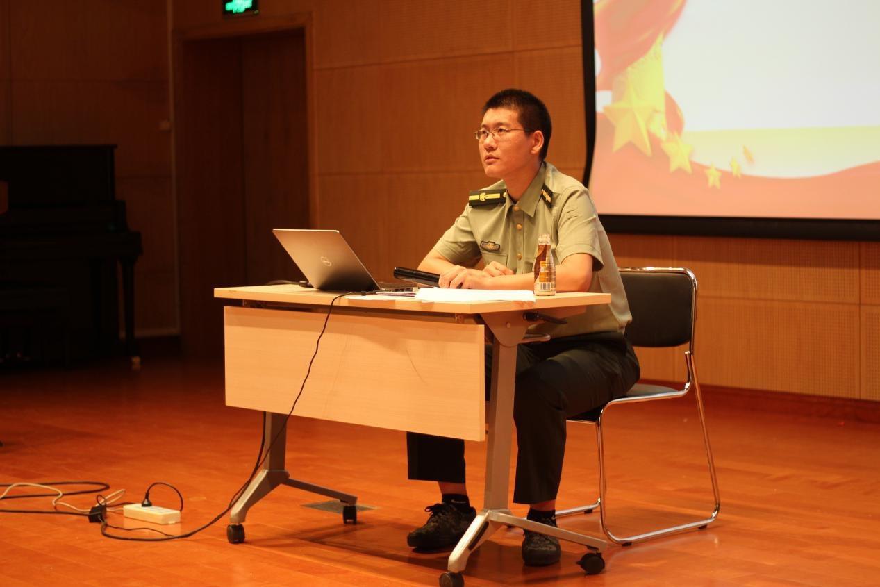于学生活动中心小音乐厅召开了军训动员大会。指导员郑宗鹏、副指导员唐琳和陈茂哲及国旗护卫队学生教官出席会议。