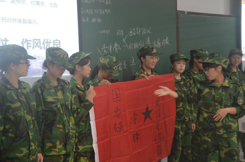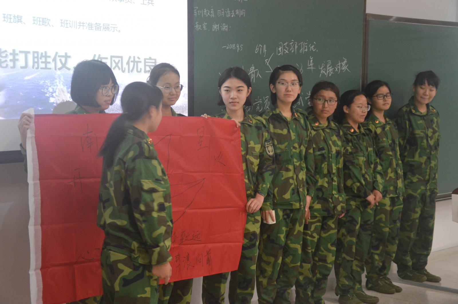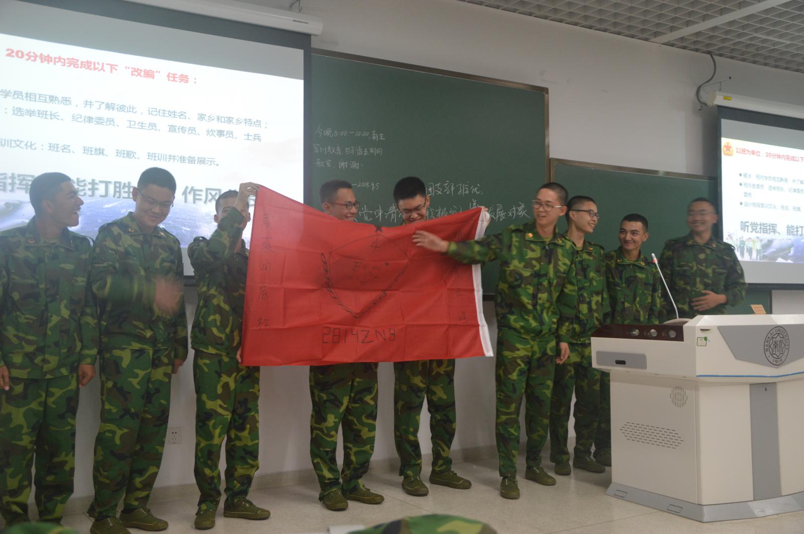 互动教学环节和成果展示环节。同学们在副指导员唐琳和陈茂哲的组织下,以改编后的班为单位进行了“自主改编”。班内同学自主选举班长、纪律委员等班委。完成了基本组织建设后,各班讨论制定各班班名,班旗,班歌,班训并轮流上台进行展示。在最后的互动展示环节指导员郑宗鹏充分分肯定了同学们的学习成果,充满想象力和创造力,整个过程充满创意,也让同学们通过理论学习认识到发展壮大党的队伍的重要意义,同学们也纷纷表示要树立共产主义信仰,积极向党组织靠拢。各班成员分工合作,积极配合,学习活动在积极热烈的气氛中进行。