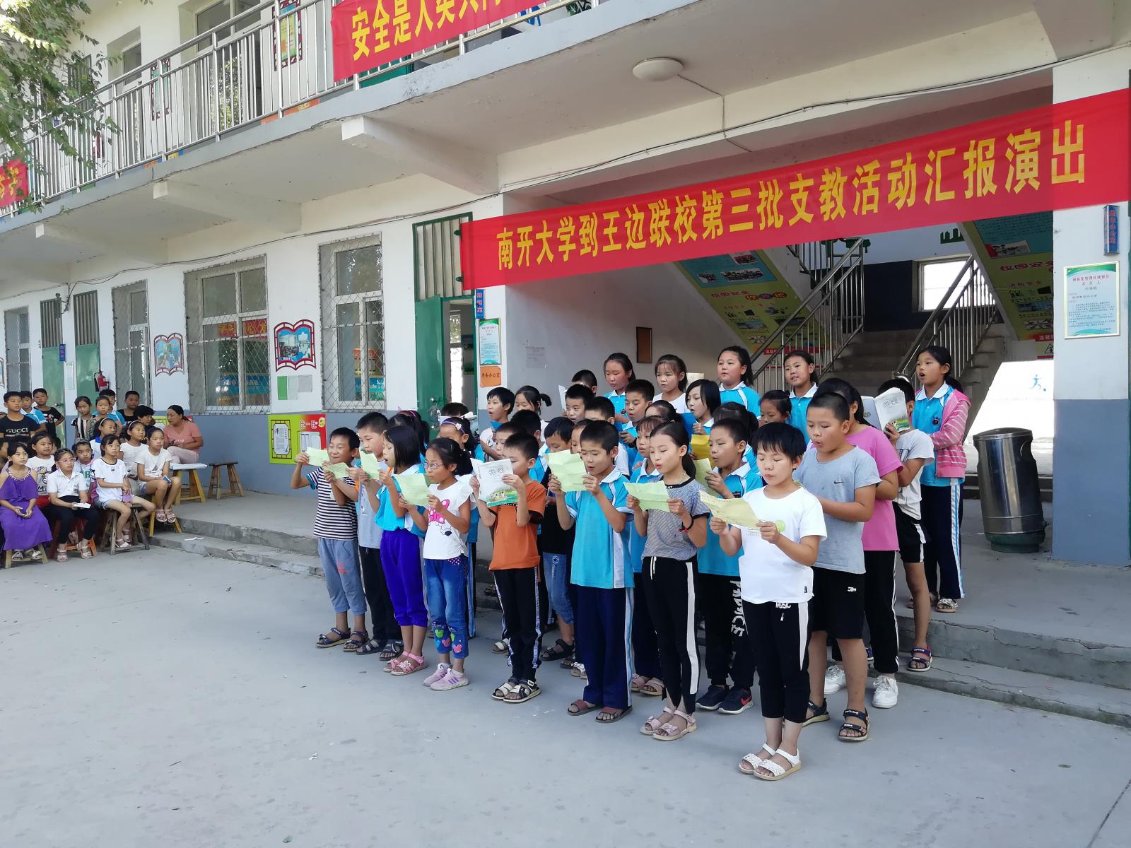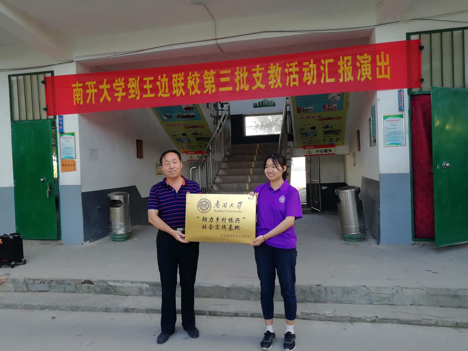 团委志愿服务与社会实践部赴河北邯郸暑期社会实践团在支教的王边联校举办了汇报演出暨授牌仪式,总校张书记、王边联校王校长、支教队全体成员以及全校师生共同参加,为七天的支教活动划上了一个圆满的句号。