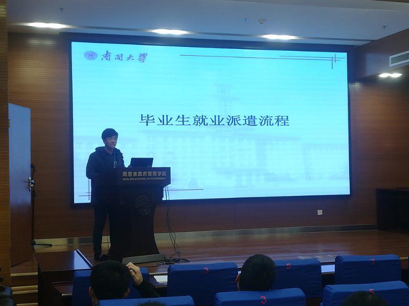 辅导员从学生毕业派遣的具体工作讲起,为学生详细讲解了毕业派遣的流程、手续及相关材料的提交要求;还包括当前的就业形势、主要行业的情况、国家的就业政策、大学生就业的最新动向等。此外,两位毕业生辅导员还结合往届毕业生的实际情况向毕业生介绍了一定的面试技巧、注意事项,特别强调了提高警惕、防范求职诈骗等安全问题。