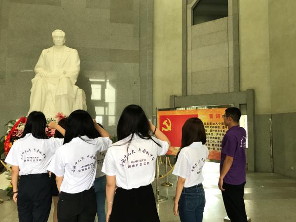 在纪念馆前厅,看着周总理慈祥的面容,展演团实践队成员们重温入党誓词,嘹亮的誓词声仿佛又带我们回到了96年前南湖嘉兴的那条游船上,星星之火开辟了一个新的时代。