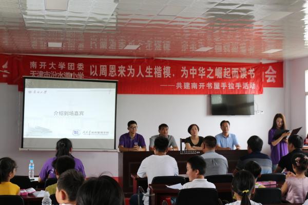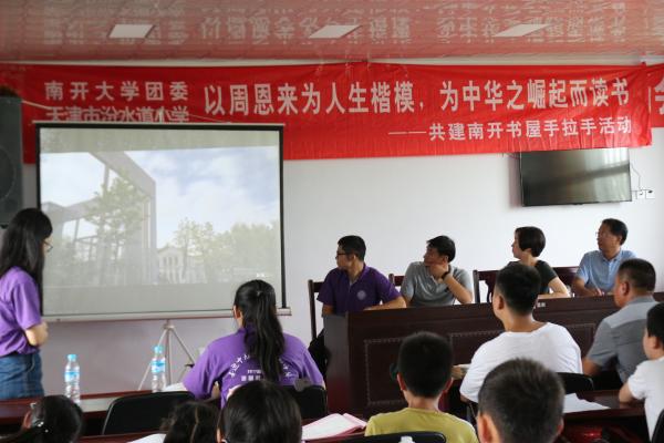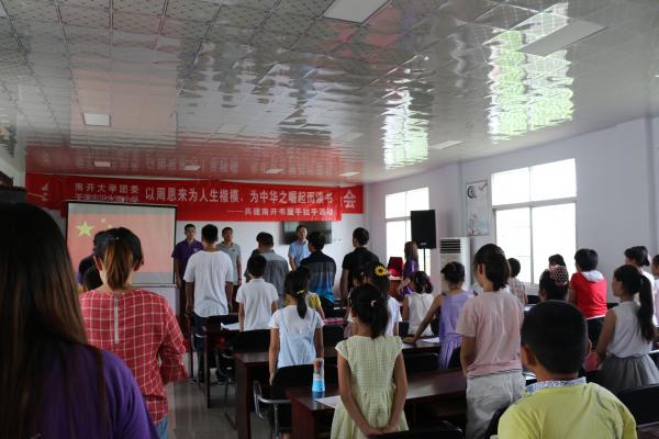 恩来精神展演团暑期社会实践队的一行成员来到安徽省淮南市寿县堰口镇青少年服务中心,并与寿县团委进行了共建南开书屋暨暑期支教活动启动仪式。
