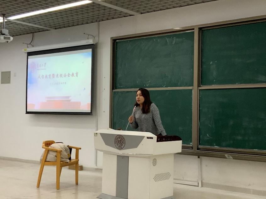 学生考试违纪和作弊的认定及处理办法》等文件规定出发向大家开展考试诚信教育。娜老师详细讲解了各类考试违纪行为对应的处理办法,从通报批评、警告或严重警告、记过、留校察看、不授予学士学位、开除学籍层层递进,告诫同学们考试作弊的严重后果,并通过实际案例警示大家引以为戒,切勿抱有侥幸心理。随后,娜老师叮嘱大家要高度重视寒假期间的安全问题,包括留校学生的宿舍安全、离校返家途中安全以及返校学生的居家安全,做好安全防范。之后,娜老师就大家都十分关心的“学分制收费政策”进行说明,对于学分制收费标准、专业学费和学分学费的区别、学分账单核对等方面都做出详细的解释。