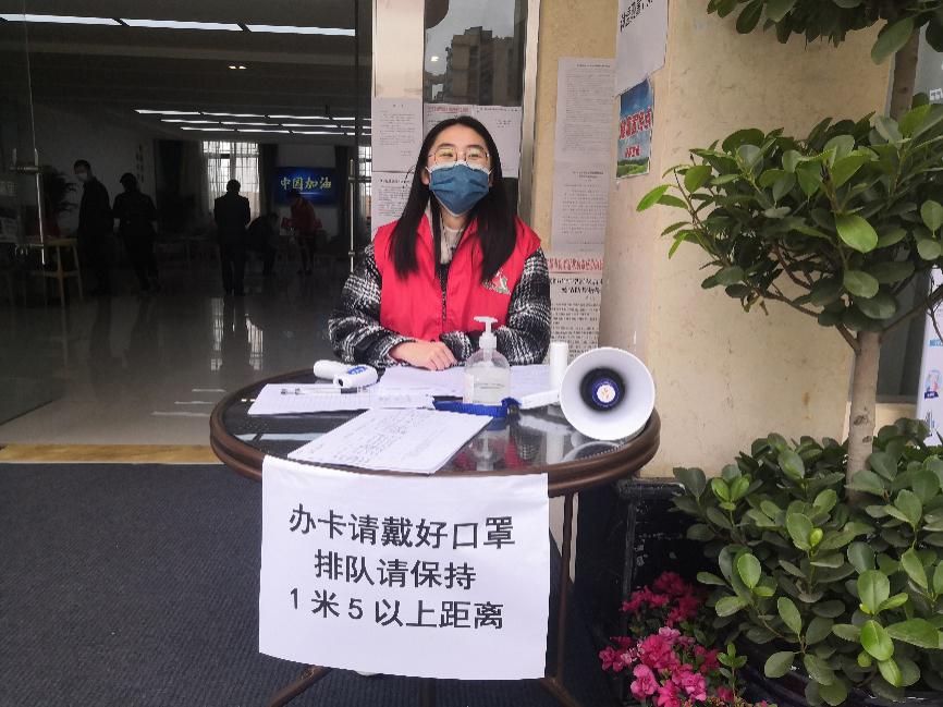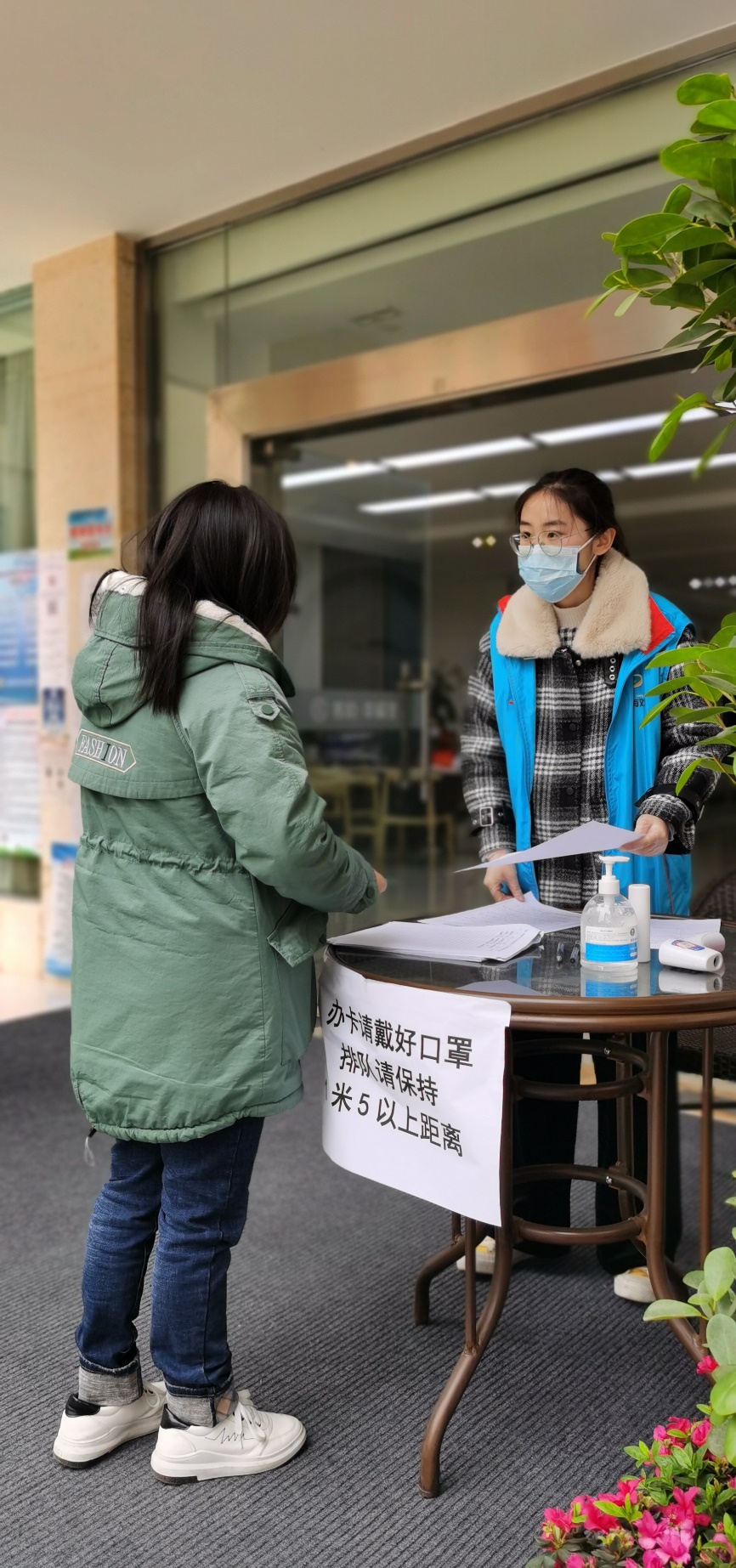 2019级社会工作专业硕士生邓晨响应团中央号召,前往四川省成都市保和街道团结社区党群服务中心报道,成为社区的一名党员义工。为落实疫情期间工人复工的相关政策,促进社区居民生活恢复正常,她在社区党群服务中心登记社区进出人员信息,为前来办理复工健康证的居民测量体温,并解答办理健康证的相关疑问。