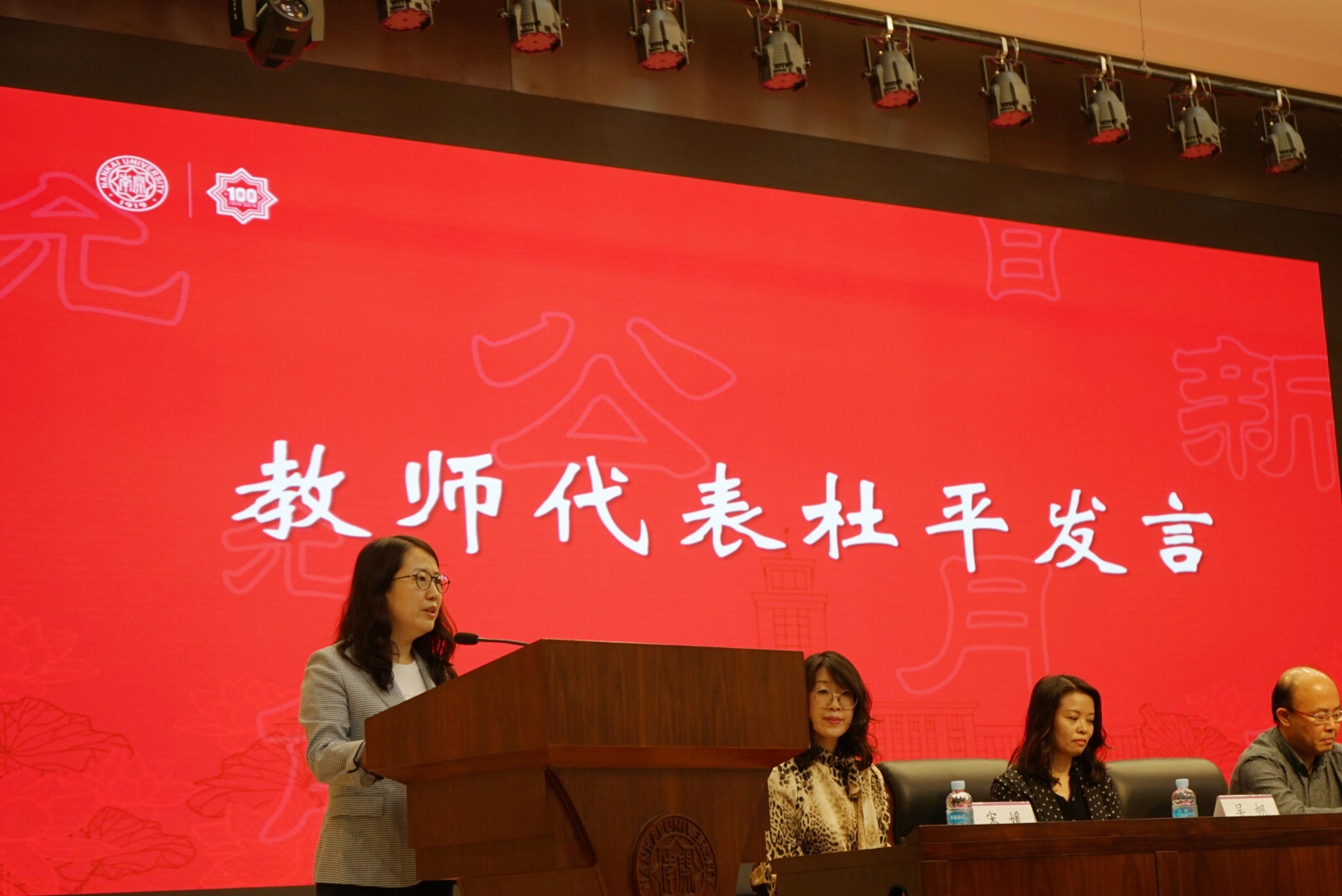 班导师杜平作为教师代表发言,她鼓励同学们多去图书馆走一走,好读书、读好书,洞悉现实,追求真知,不断激发思想,实现创新。