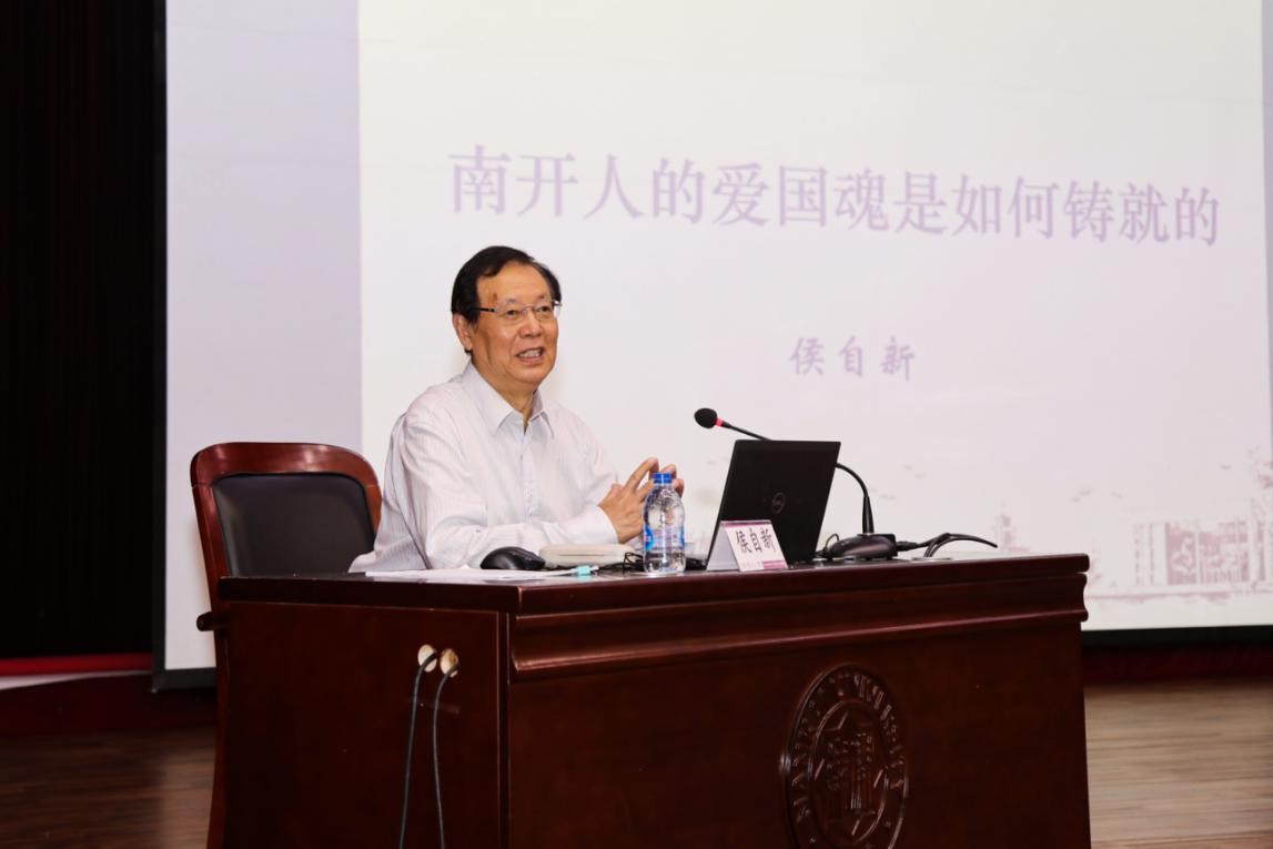 原校长、南开校友总会名誉理事长侯自新为2020级政府学院专硕新生讲授“开学第一课”。侯自新以“南开人的爱国魂是如何铸就的”这个深刻主题出发,回溯了严修、张伯苓老校长举办南开学校的初衷,深入分析了南开爱国主义教育特色的形成过程,最后结合习近平总书记对我校“具有光荣的爱国主义传统,这是南开的魂”的勉励,鼓励师生继承与发扬南开爱国传统,激发了在场师生爱国爱校的使命感和责任感。