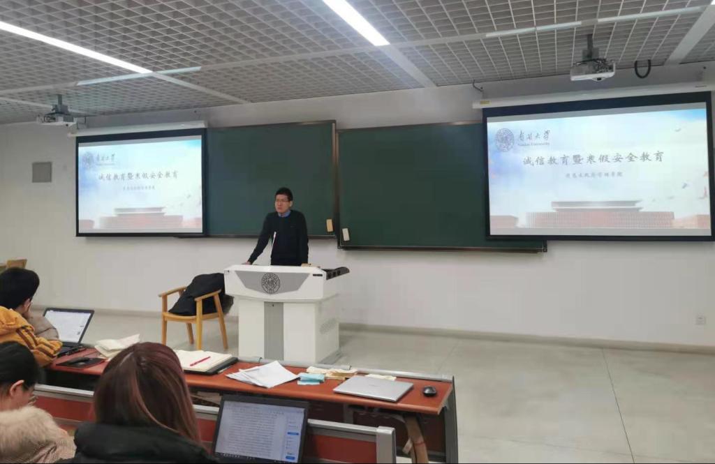 2020年12月17日下午,政府学院2018级本科生于公共教学楼B202、203召开诚信教育暨寒假安全教育大会。