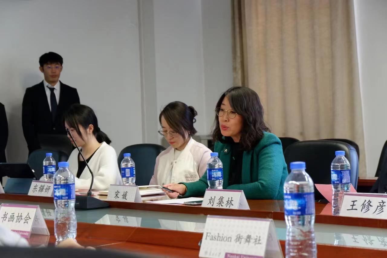 召开新学期挂靠社团联席会,学院党委副书记、副院长宋媛,团委书记王修彦以及各社团指导教师出席本次会议,学院社团管理部成员及各挂靠社团代表参会。