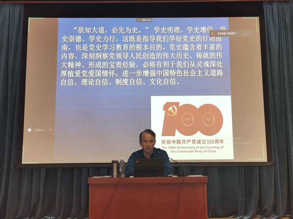 马克思主义学院教授盛林以“深化党史学习教育,全面贯彻党的二十大精神”为主题,从历史是最好的教科书、继承发扬党的革命传统与优良作风——从党史中汲取养分、用好红色资源,赓续红色血脉、深入学习贯彻党的二十大精神,全面推进中华民族伟大复兴四个方面进行深入浅出的解读,鼓励同学们通过学党史、悟思想、办实事、开新局,以昂扬姿态奋力开启全面建设社会主义现代化国家新征程。