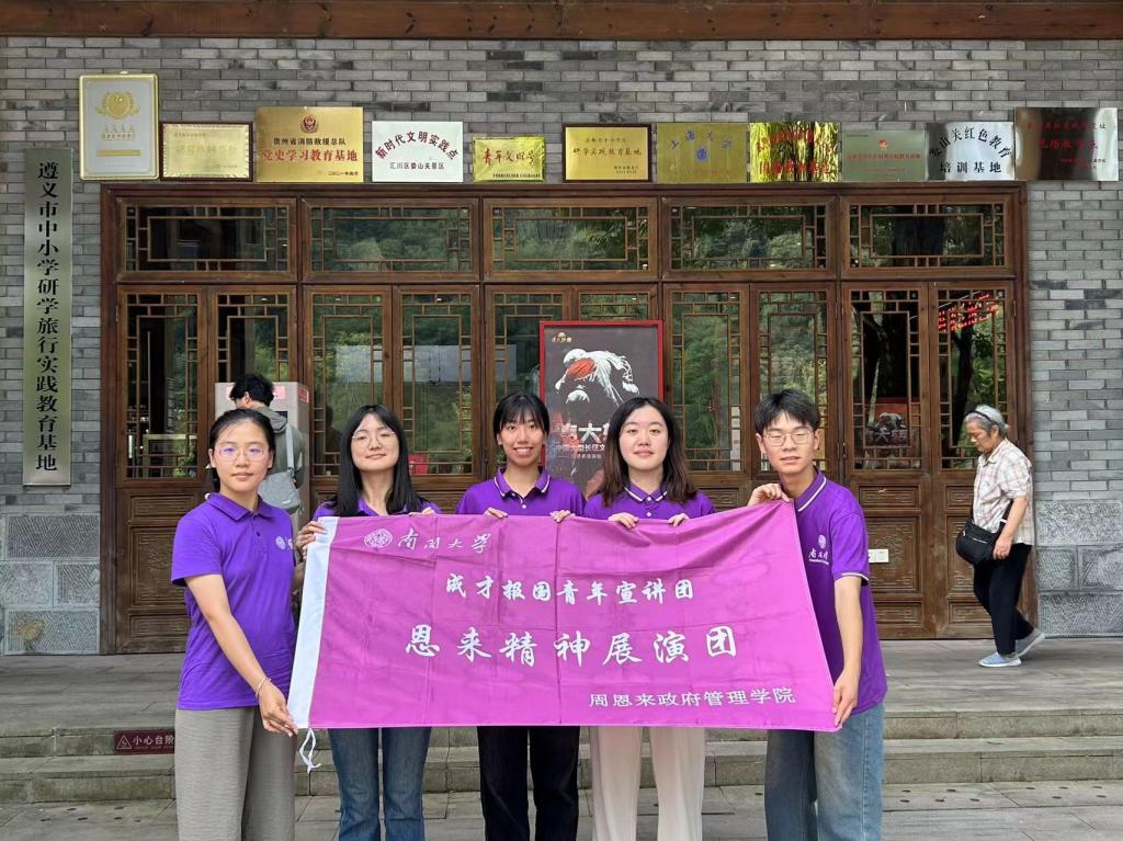 (通讯员:王燕、王国舟)2024年8月6日,恩来精神展演团部分成员在贵州省娄山关景区的游客服务中心为游客开展了以“聆听历史回声,传承红色精神”为主题的恩来精神展演。娄山关景区位于贵州省遵义市,以其险峻的地势和丰富的历史文化而闻名,是黔北第一关,素有“一夫当关,万夫莫开”之称。娄山关不仅是自然风光的胜地,还是红色经典景区,承载了革命先烈的赤诚热血。展演团成员在娄山关景区开展恩来精神展演,既契合了景区的红色性质,又将总理故事从天津带到贵州,将恩来精神从学校传向社会。