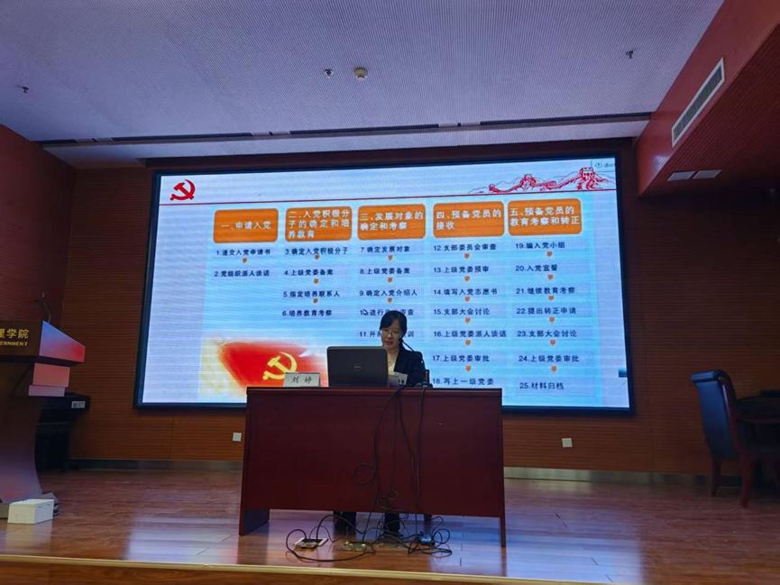 入党积极分子培训班举办第二次专题培训,学院专职组织员刘婷作“如何成为一名合格的大学生党员”主题讲座,学院70余名入党积极分子参加。本次培训旨在帮助入党积极分子了解入党相关知识,树立正确的入党动机,端正入党态度,明确努力方向。