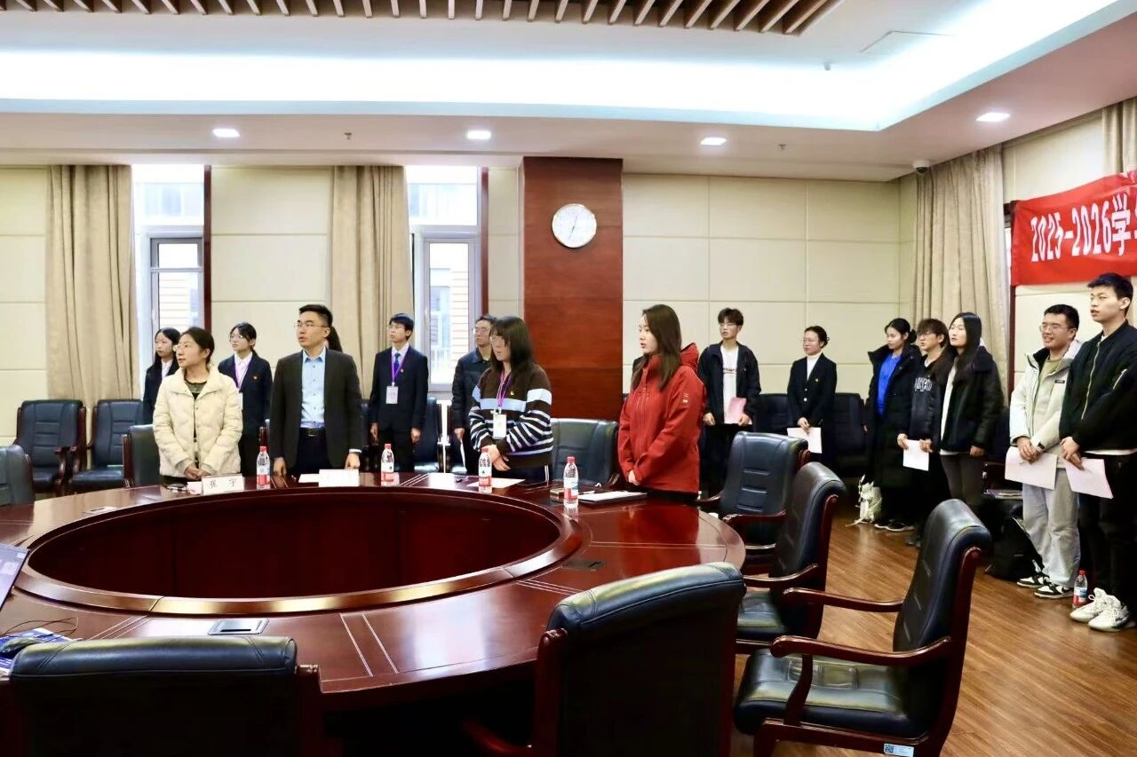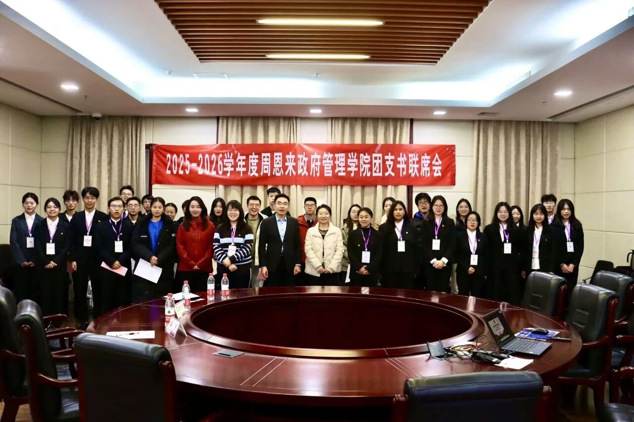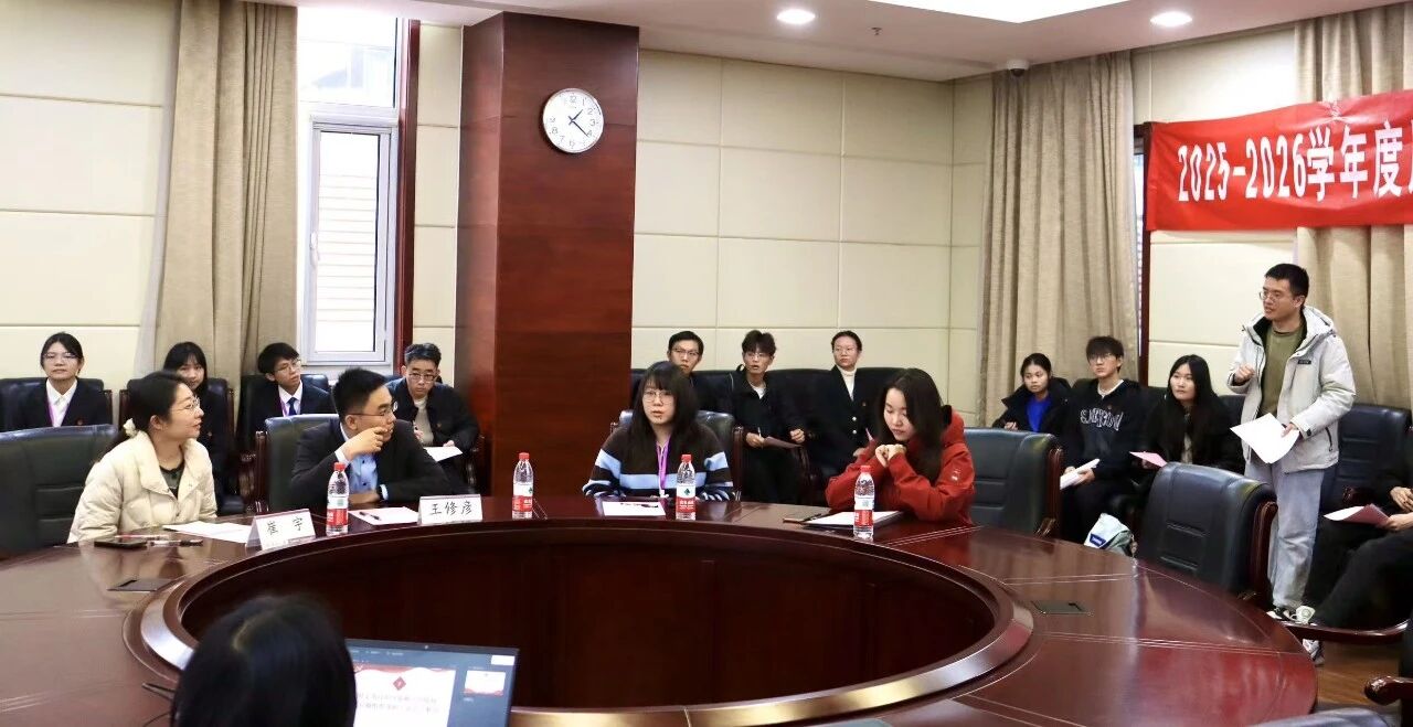 2025-2026学年度秋季学期团支书联席会于院楼129会议室顺利举行。学院党委副书记兼副院长崔宇、学院团委书记王修彦、团委组织部负责人董宣含、优秀团支书2023级本科生国际政治班级团支书袁语浩、美国A片