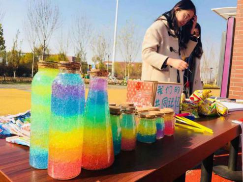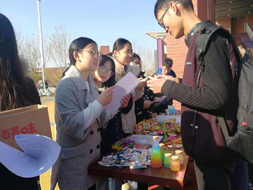 “过去板块”设计了关于经典动画片、经典歌曲歌词接龙、中学知识考察等趣味题目,吸引了不同学院、不同年级学生进行抽签竞答,竹蜻蜓、彩虹瓶、经典小零食等精美礼品得到了大家的一致好评。