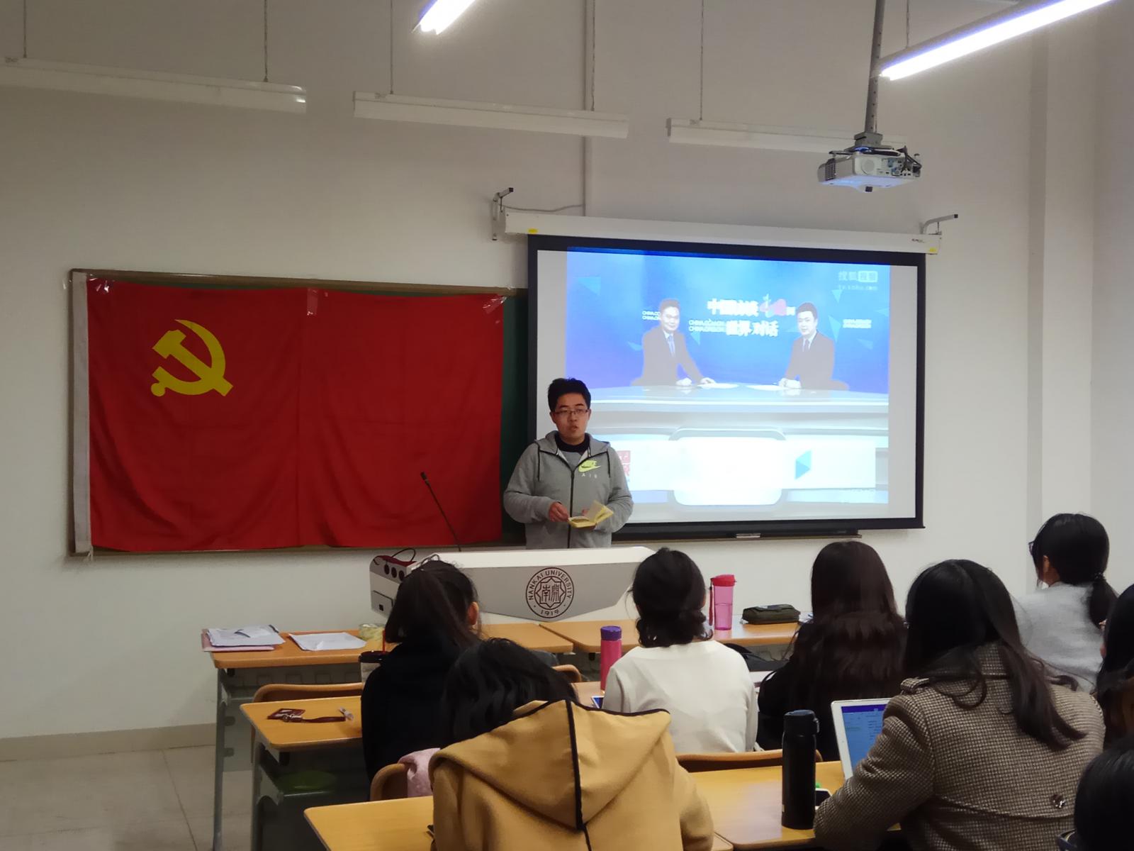 党支部宣传委员姚桂谦主持了会议。他说,十九大闭幕半个月以来,大家一定都了解了十九大的动向。作为新时期新发展过程中的党的一次重要会议,十九大的精神需要我们领会,十九大的意义需要我们正确认识,十九大传达的思想需要我们学习。我们需要保持热情、注重思考,不断深入地学习十九大报告。
