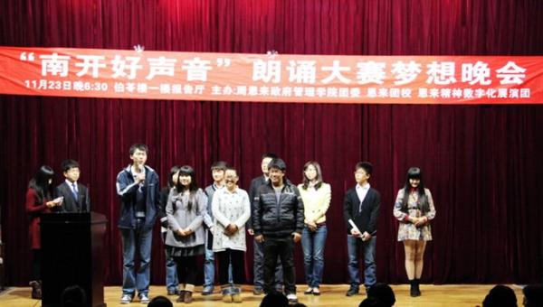恩来团校、恩来精神数字化展演团承办,借鉴2012年风靡全国的《中国好声音》节目,引进了导师制,共经历了三场初赛,两场组内战,从来自全校各个院系的70多位选手中选拔出八名最优秀的学员进入最终的梦想晚会,旨在寻觅南开园最打动人心的好声音,让更多人了解并喜爱朗诵这门艺术的同时,弘扬恩来精神,向周总理致敬,向祖国致敬。