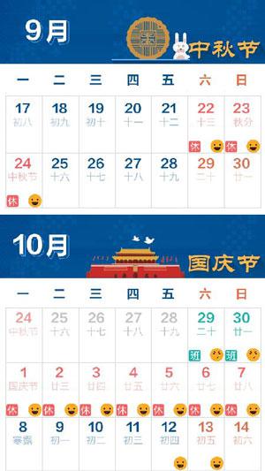 一、中秋节:9月24日(星期一)放假,与周末连休。
