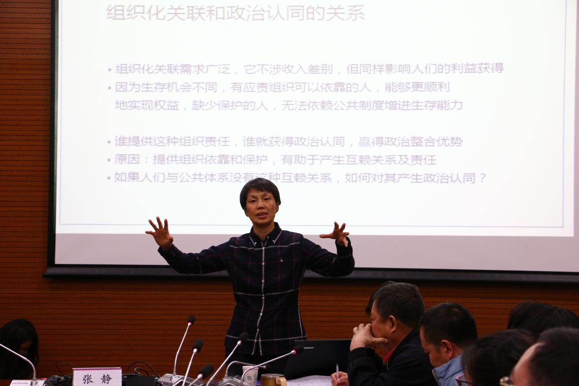 她指出,来自社会变迁的挑战,使得曾经有效的个人和公共体制的常规关联出现较大规模的中断。因此,基层组织平衡利益的机制逐渐式微,制度化传递通道逐渐消失,“激励”了社会情绪积累转化为政治问题。最后,张静教授转向经验现象背后的理论问题,指出社会组织化结构通过构造成员身份、组织囊括、结构可及性三种方式影响人们的生存利益,并进一步阐述了组织化关联与政治认同的关系。