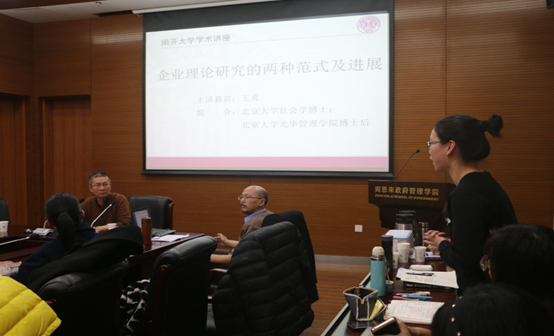 ,做了题为“企业理论研究的两种范式及进展”的讲座。社会学系的系主任赵万里主持,学院部分师生参加。