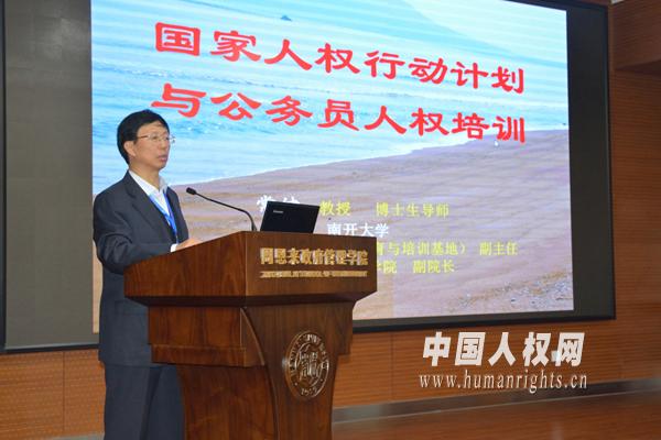 人权研究中心副主任常健教授首先介绍了新一期国家人权行动计划的主要内容和特点以及对公务员人权知识教育的要求,并对公务员人权培训的主要内容和需要解决的问题进行讲解,回答了与会者提出的问题。根据与会者的工作岗位,培训分成了讲习班和研讨班两组进行。在讲习班上,围绕美国A片