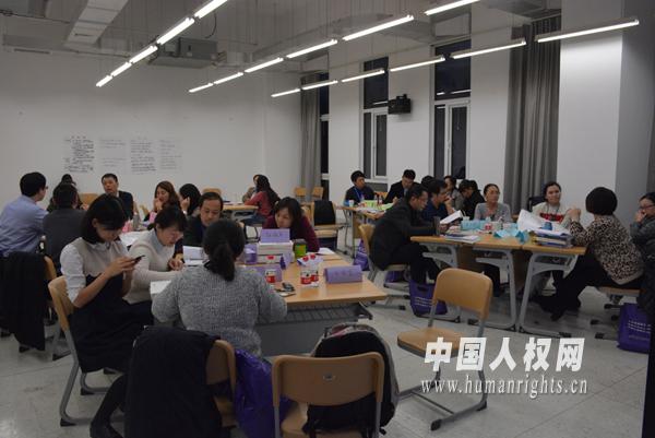 人权研究中心编著的《公务员人权培训学员用书》和《公务员人权培训教师用书》两本教材,采用角色扮演、视频教学、分组辩论等方式,开展多样化的实验教学,与会教师积极参与教学活动,针对公务员人权培训中的课堂设计、教学方法等问题集思广益,场面非常热烈。在研讨班上,各位教研部主任交流了各自学院开展人权教育的实际情况和面临的问题,并就如何将人权知识教育融入党校、干部学院、行政学院和警官学校的课程交流了看法,提出了很多积极可行的建议。最后,两组参会者就如何有效地开展公务员人权培训进行了交流。与会者一致认为,对公务员开展人权培训是落实“国家尊重和保障人权”的宪法原则和国家人权行动计划要求的必行之举,同时也对公务员提高人权保障意识、防范职业风险具有重要作用。应当根据各类干部培训院校的课程要求,采取灵活多样的形式将人权知识融入到各门课程中去。不仅应在宪法、行政执法、刑事诉讼法等法律课程中介绍所涉及的人权内容,而且还可以在有关“四个全面”的课程中结合相关人权内容,在各类党性教育课程中讲述中国共产党是如何尊重和保障人权、促进人权事业发展的,并通过各种现实案例的分析提高公务员的人权意识和人权保障水平。