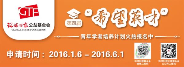 第四届“希望英才”青年学者培养计划正式启动报名!从201616日到201661日,申请人可于项目官网//zt.gtfoundation.cn下载申请表,填写完毕后连同相关材料(申请人博士论文电子版;自选能代表申请人学术水平作品2-3篇;博士学位证书扫描件;英语能力证明文件(参与访学计划报名者))发送至 [email protected],并在邮件名中注明"环球时报公益基金会+"希望英才"青年学者培养计划+姓名"。欢迎全国各地的青年学者前来报名!