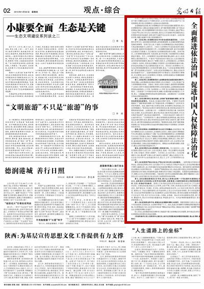 中共十八届四中全会审议并通过了《中共中央关于全面推进依法治国若干重大问题的决定》(以下简称《决定》),它对中国人权事业发展产生了深刻的影响,使中国人权保障迈入全面法治化的新阶段。