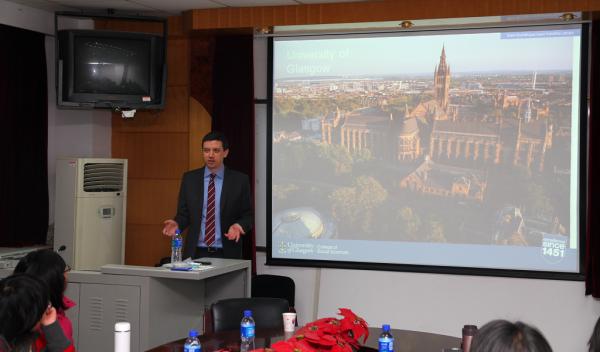 城市管理专业学生详细介绍了格拉斯哥大学和城市管理专业合作办学项目的相关情况,并从课程、学分、研究生项目、学生社团活动、生活居住等方面回答了同学的提问。