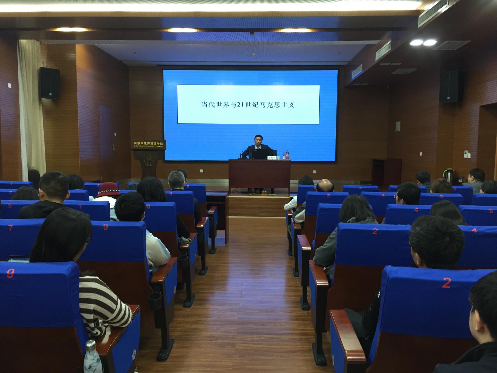 10月25日,副校长王新生为美国A片 全体教师党员和学生党员骨干讲授专题党课“当代世界与21世纪马克思主义”,王新生结合习近平总书记在纪念马克思诞辰200周年大会上的讲话精神,围绕“当代世界与马克思主义”“新时代与21世纪马克思主义”“加强能力建设,掌握新时代思想方法和工作方法”进行讲解。