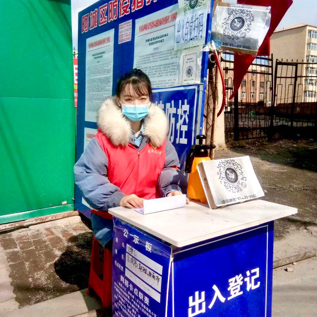 七栋楼社区是阿城区最早的居民小区之一,是六十年代老国企阿城继电器厂的职工家属区。这里的17栋楼涵盖了好几个时代,1081户居民3070人,绝大多数都是离退休老职工。老人们的老习惯不好改,新闻看得少,疫情防控重视程度也不够,且不太会操作智能手机,扫描健康码因而成了疫情防控的最大瓶颈。刘祯妍从上岗开始,就主动承担起居民出入登记的重任。“因为自己是学社会工作专业的,所以在志愿服务期间对社区中的老年人、残疾人等相对弱势群体就更关注一些,在沟通时也有意识地运用专业知识和方法”。