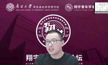策划推出“翔宇青年学者论坛”的特殊意义。他对各位嘉宾的到来表达了感谢,并介绍了论坛命名的由来——论坛以周恩来的字号“翔宇”命名,是为了纪念杰出校友周恩来学长,遵循他“为中华之崛起而读书”的教导,鼓励青年学者开展学术交流和合作。