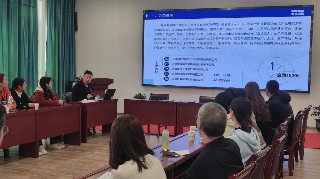 与天津博成房地产土地资产评估有限公司的契合之处,鼓励学生更好地用所学知识为社会发展服务。
