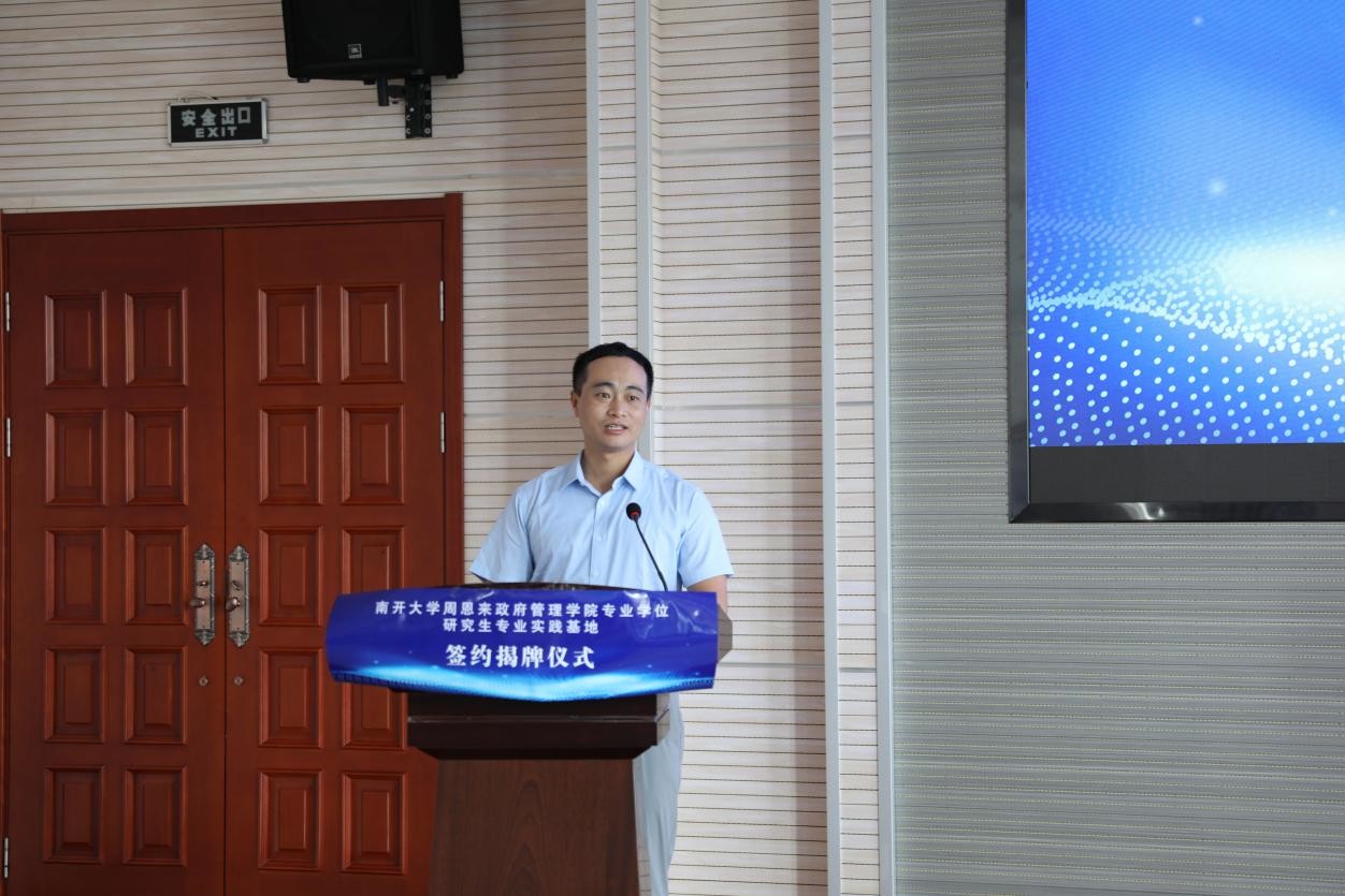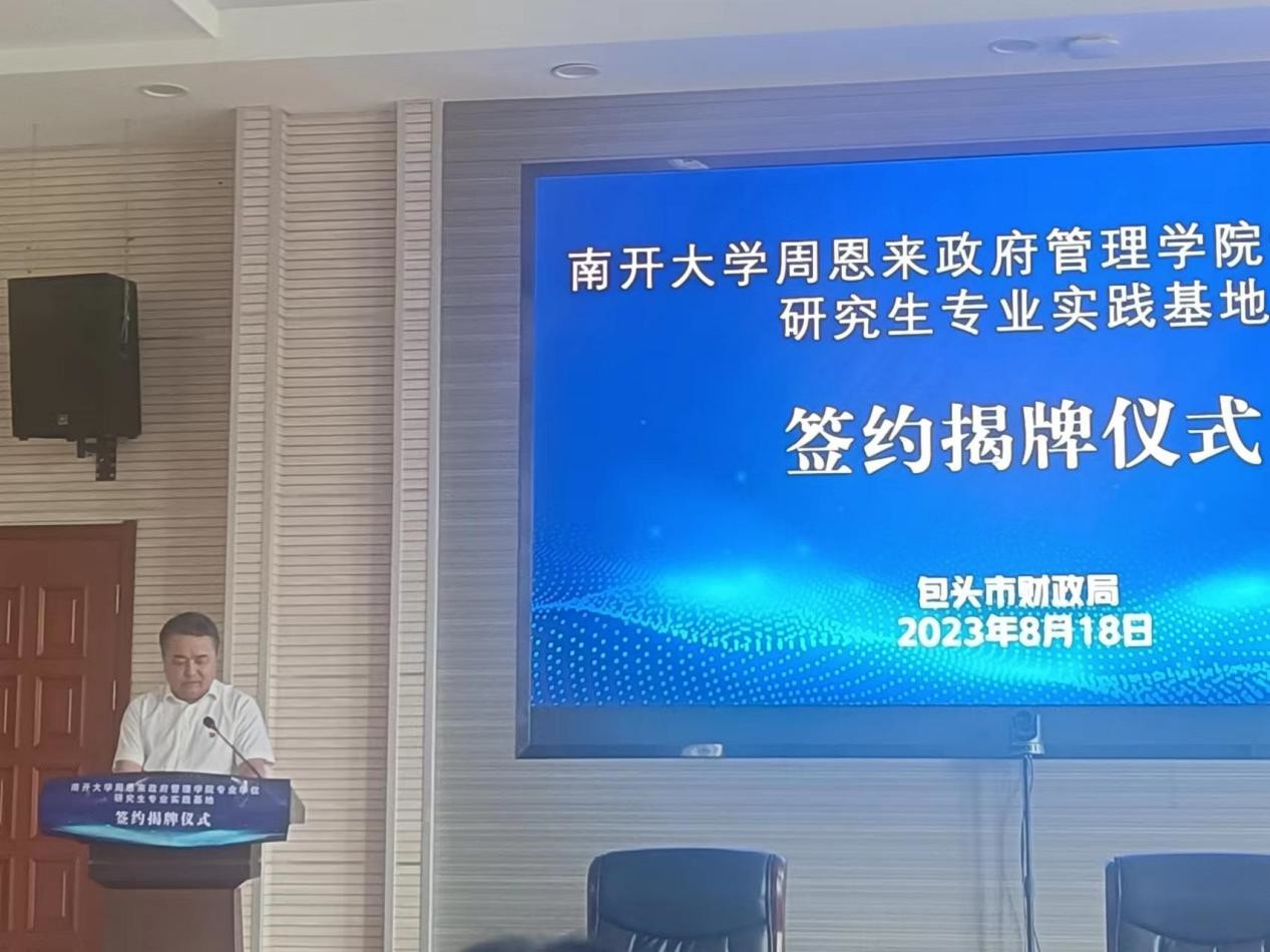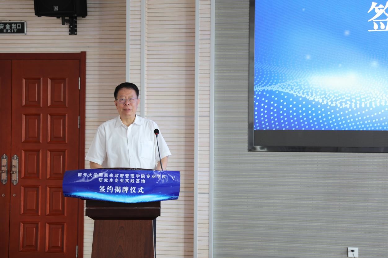 吴晓林副院长代表双方共同签订战略合作协议。朱光磊教授与奇跃成局长共同为研究生专业实践基地揭牌。