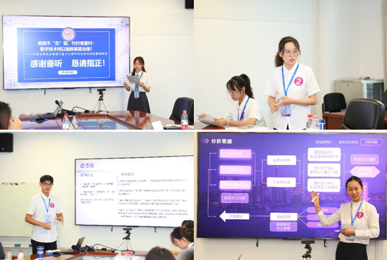 决赛按照“案例展示、评委提问、队员答辩、评委打分”的流程进行。决赛现场异彩纷呈,各参赛队伍结合自己的实地调研和大量访谈,对中国各地数字政府建设的亮点和经验进行了概括提炼,对各领域数字化转型过程中面临的难点堵点给予了全面剖析。不论在案例陈述还是在案例分析过程中,都体现了当代大学生对“国之大者”的关注,体现了青年学子们对现实问题的深入思考。