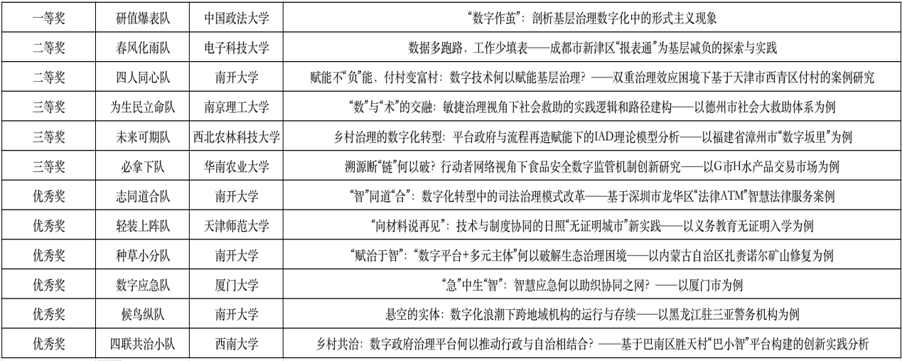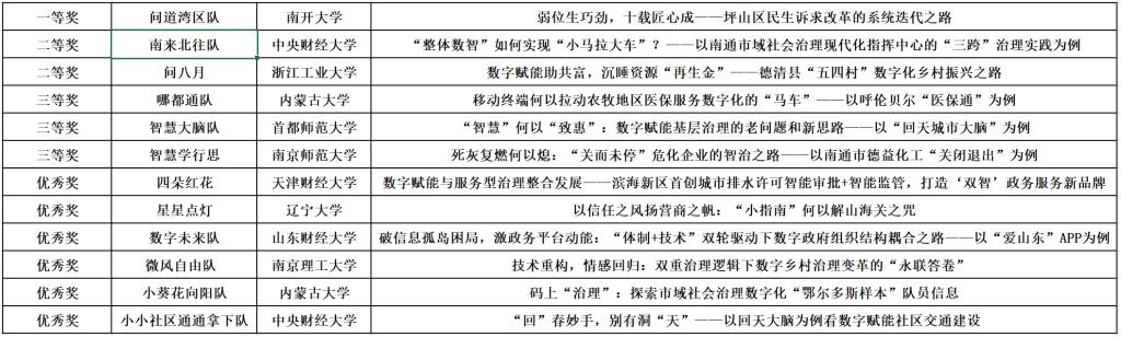 “种草小分队”、厦门大学“数字应急队”、西南大学“四联共治小队”获得本次案例大赛本科生赛道优秀奖。天津财经大学“四朵红花队”、辽宁大学“星星点灯队”、山东财经大学“微风自由队”、内蒙古大学“小葵花向阳队”、中央财经大学“小小社区通通拿下队”获得本次案例大赛研究生赛道优秀奖。