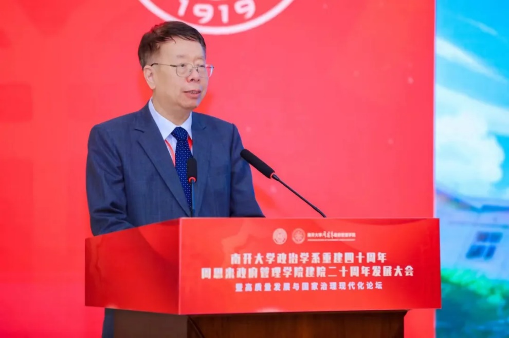 成立20周年、公共管理专业学位办学20周年之际向各位嘉宾汇报学院、学科、专业的发展历程。首先,我想对长期以来支持、关心南开政治学、公共管理发展的各位领导、兄弟院校领导、各位的光临表示衷心感谢!
