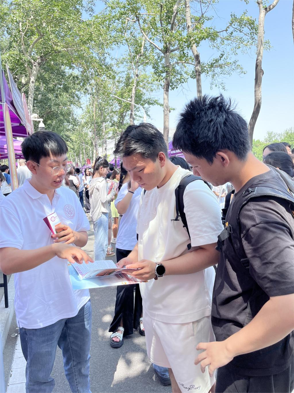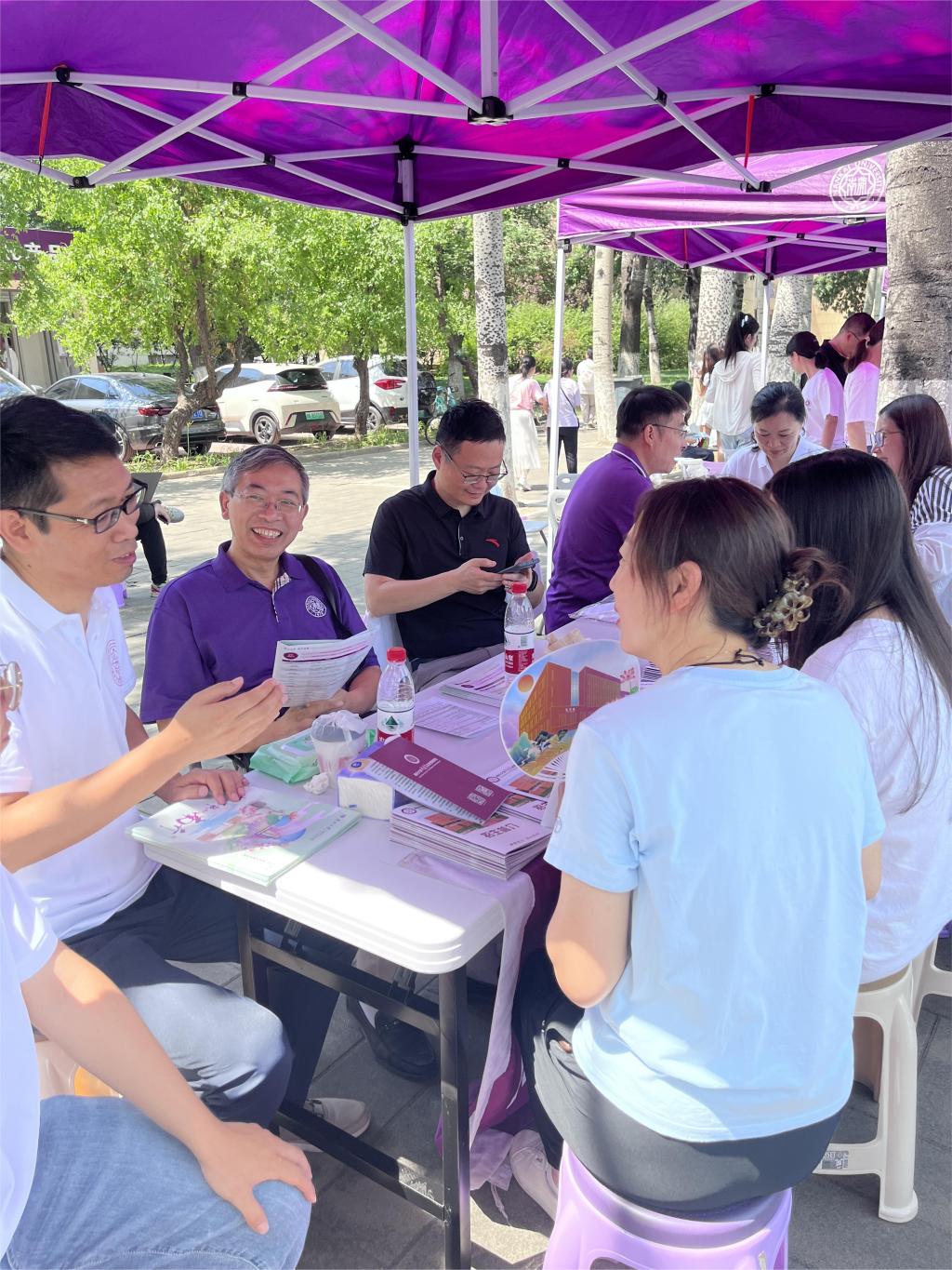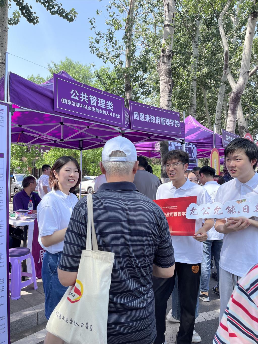 院长吴晓林,副院长郭道久,副院长张宁,各系教师代表、辅导员、学生志愿者等组成招生宣传队,在大中路旁设置点位,面向高考考生、家长开展招生咨询。