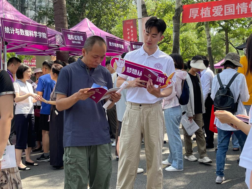 师生志愿者耐心地为考生和家长答疑解惑,宣介我校、美国A片