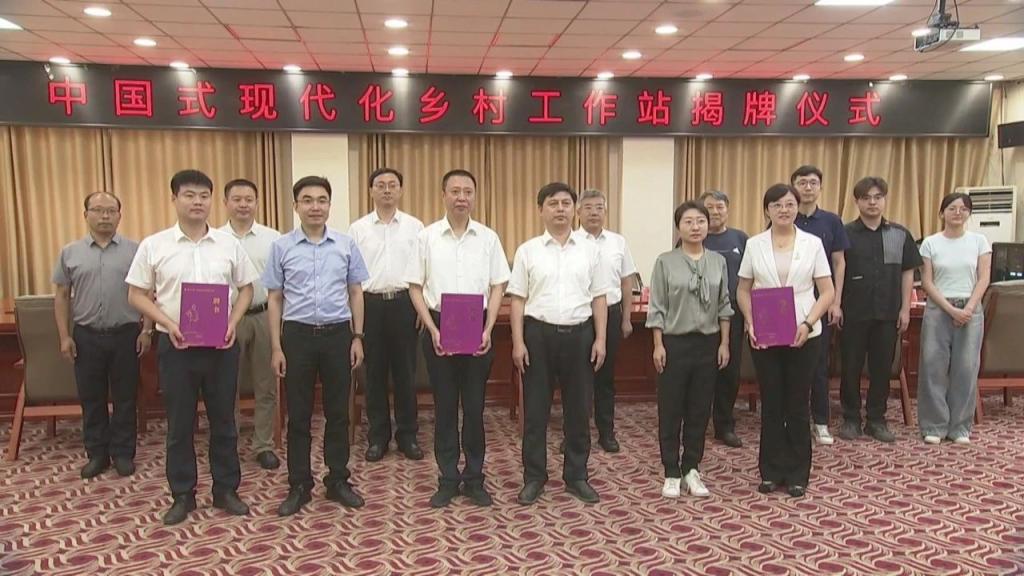 李纪元与翟磊代表双方进行中国式现代化乡村工作站签约。李国德与崔宇为中国式现代化乡村工作站揭牌。李国德为本地站长李纪元授聘书,崔宇为学校站长翟磊授聘书,王修彦为校友站长孟旺授聘书。