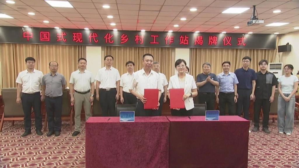 与河北省沧州市孟村回族自治县举行“中国式现代化乡村工作站”签约揭牌仪式,共同搭建校县创新交流合作新平台,开启校县合作新篇章。