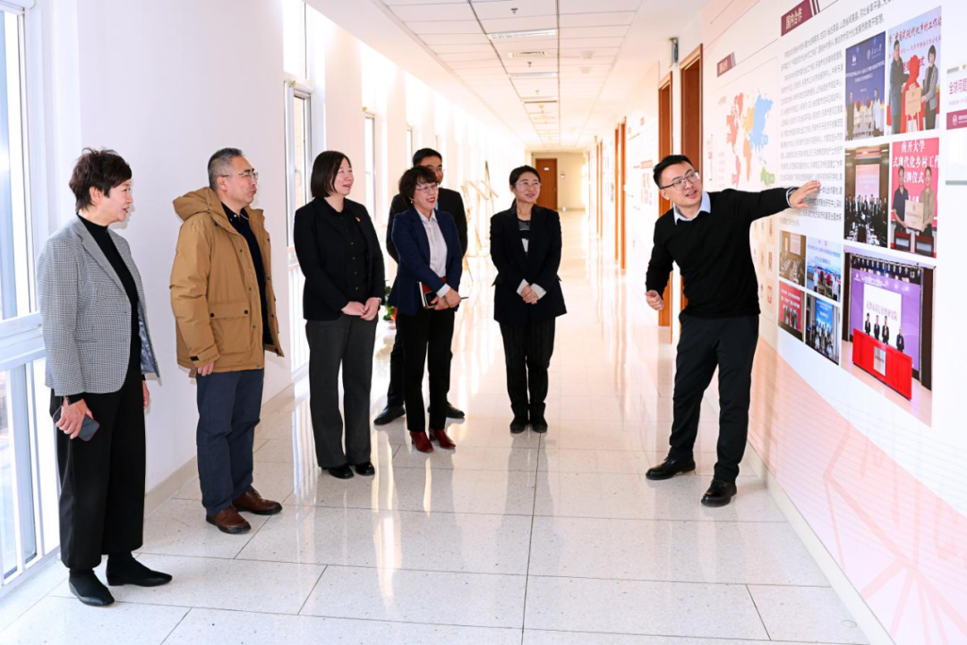 恩来精神展演团团长王国舟介绍展演团品牌活动。张发林副院长带领参观院史展。