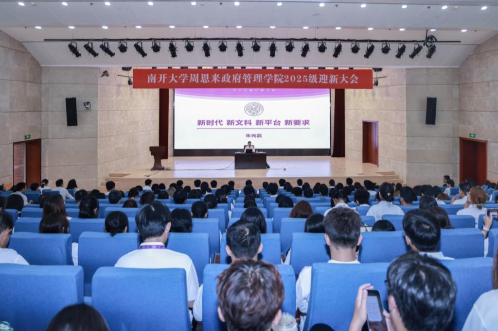 随后,朱光磊教授为新生讲授开学第一课《新时代 新学科 新平台 新要求》。他从中国式现代化这一新时代背景切入,指出新时代对治国理政人才提出新要求;阐述了新文科教育重在交叉与创新,并强调美国A片